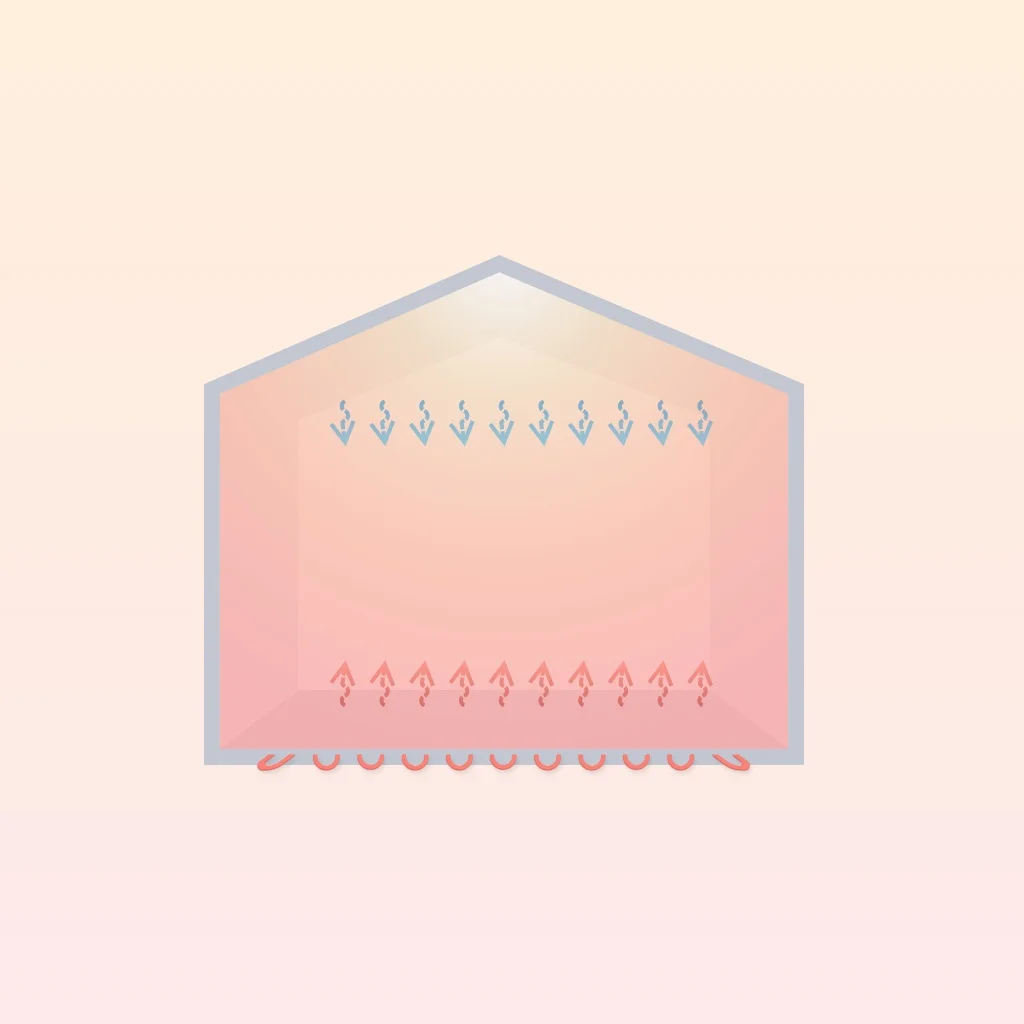 均溫穩定,地暖底下有保溫層,水泥層或木地板會儲存熱量,不會快速流失熱能。在間歇供暖的情況下,室內溫度變化緩慢。